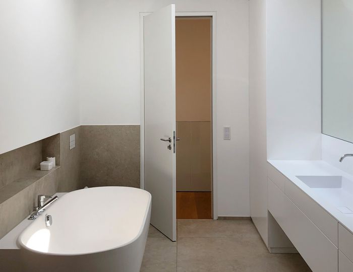- Nischenschränke in Badezimmerwand bündig eingelassen